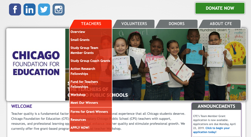 The Chicago Foundation for Education (CFE) funds Chicago Public School teachers in the most disinvested neighborhoods in Chicago, Illinois.